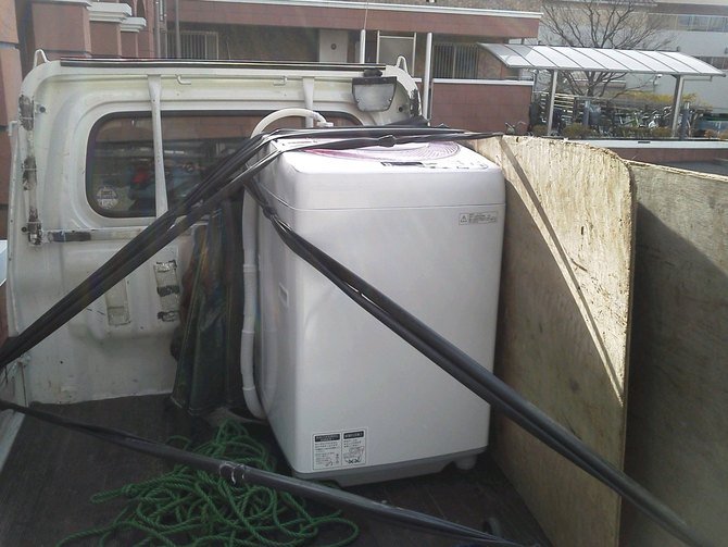 前回ソファーで訪問したリピーターのお客様です。海外への引越し直前に洗濯機を片づけて欲しいとご依頼でした。