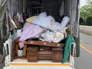 週末にお電話をいただきました。転勤で引越しする事となり希望日の翌日に訪問となりました。布団一式、衣類、ビデオデッキ、ゲーム機、食器、その他と細かな物ばかりでした。
