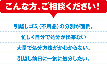 上記1〜3の困った時にお役に立てる不用品専門業者です。