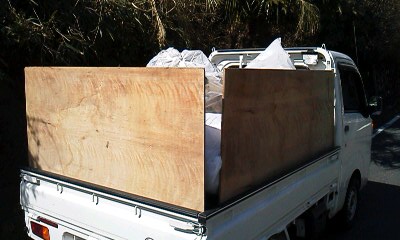 左記の現場に軽トラと2トン車と2台で行きました。 -