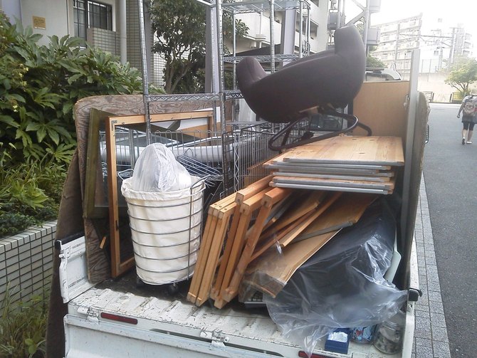 引越しゴミ回収でお電話にてすぐに来て欲しいとの事でした。引越しは終わり室内に残された引越しゴミが片付けられず困っているという事でした。他現場を終わらせ1時間半後に訪問しました。階段5階の団地でご家族様が搬出作業を手伝っていただき早めの積込み完了しました。迅速な対応にご満足いただけました。